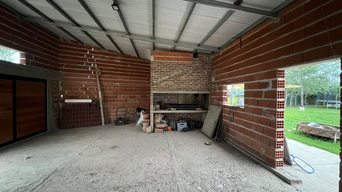 QUINTA A FINALIZAR A UNA CUADRA DE ACCESO AL PROVINCIAL - CONSTA DE UNA CONSTRUCCIóN PARA FINALIZAR, ACTUALMENTE TECHADO Y TERMINADO, COCINA COMEDOR, BAñO COMPLETO, LIVING COMEDOR, PILETA DE FIBRA, BOMBA SUMERGIBLE, EN UN ESTADO DEL 60% DE OBRA COCHERA (TECHADA CON PORTON Y SIN REVOQUES), PARRILLA, CUARTO DE GUARDADO (TECHADO, SIN PUERTA), PROYECTADO PARA LA CONSTRUCCIóN DE DOS HABITACIONES MAS.- LOTE DE 27 X 50